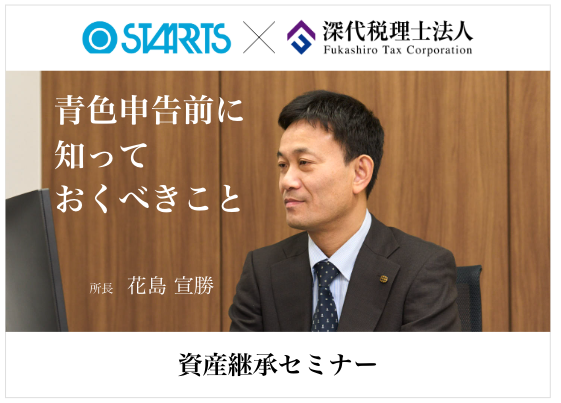 関東圏を中心に土地活用をトータルにサポートするスターツCAMが主催する「 資産継承セミナー」。深代税理士法人・所長の花島宣勝が登壇、不動産オーナー様向けに、税制改正と青色申告について徹底解説します!