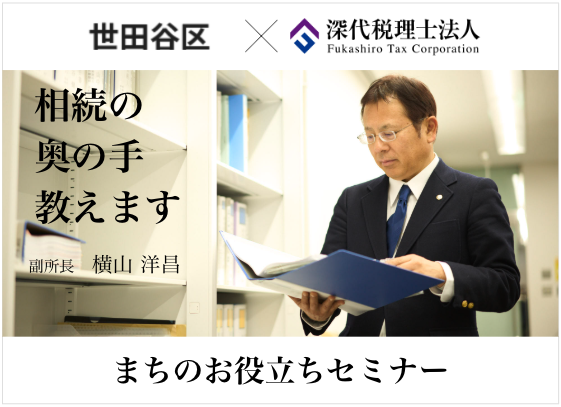 世田谷区の商店街連合玉川地区・用賀商店街振興組合と「深代税理士法人」がタッグを組み、街に暮らす人たちのお役に立つセミナーを実施。テーマは「相続税」です。深代税理士法人の強みである相続税に関して、奥の手である「物納」をわかりやすく伝授。セミナー後には、個別相談も受け付けます。